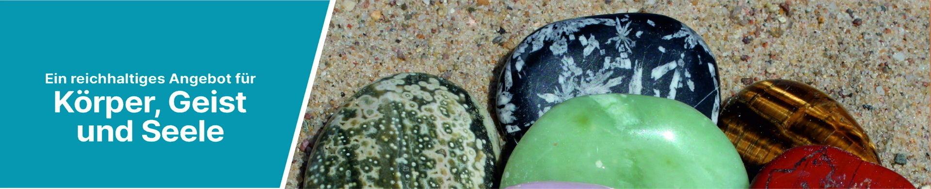 Hier in unserem Online-Shop finden Sie ein reichhaltiges Angebot für Körper, Geist und Seele, viele wunderschöne "Helfersteine".